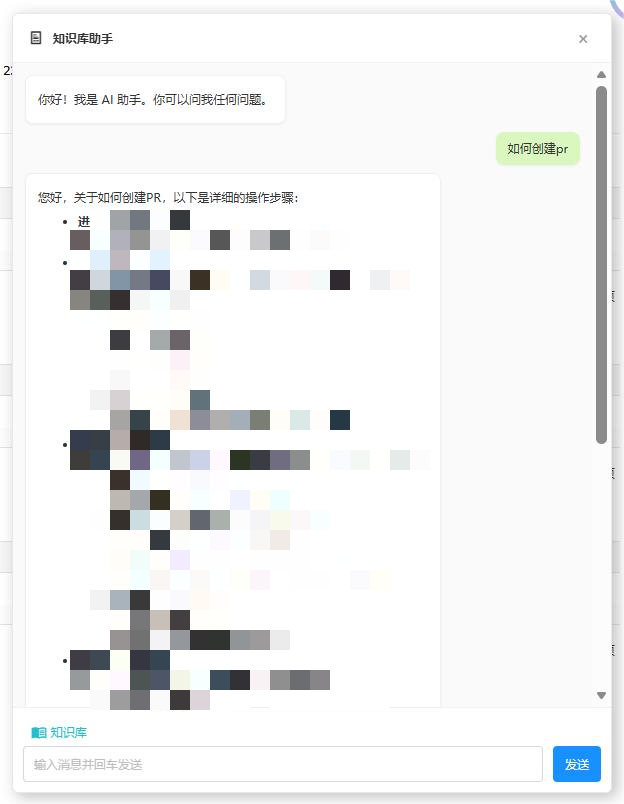 多模态检索:支持文本、附件问答(如上传操作手册,提问“如何创建PR”),RAG技术精准定位知识点,答案带原文引用