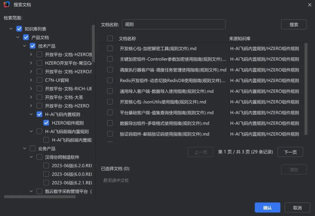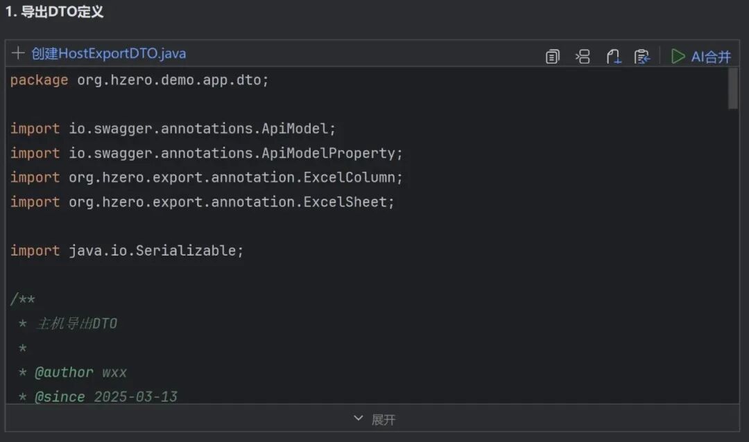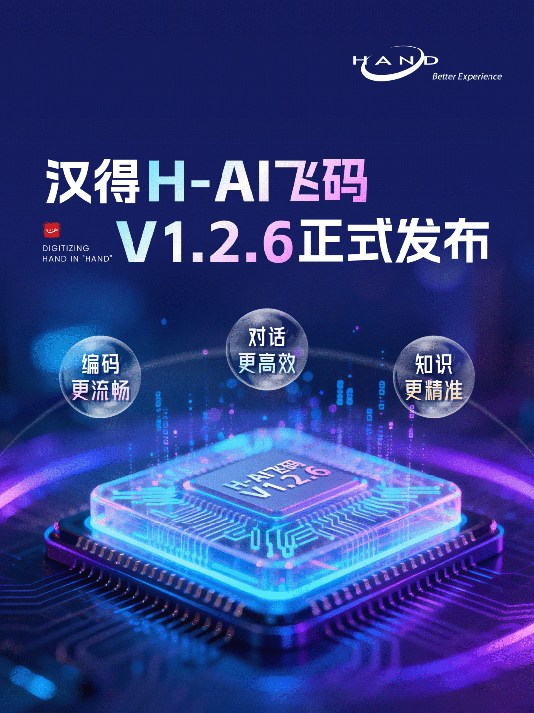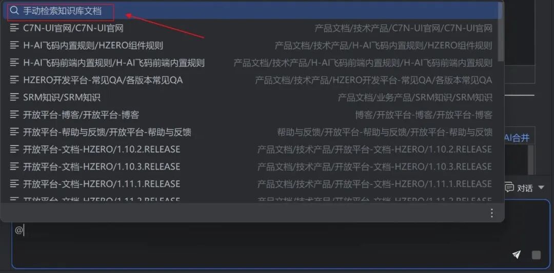 汉得企业级智能编码助手(中文名“飞码”,英文名“H-AI Coder”,以下简称“飞码”),结合AI智能驱动与H-ZERO专属规则驱动,支持智能代码补全、代码对话问答、智能代码诊断、知识问答、高质量H-ZERO相关脚手架代码生成等场景,同时支持企业级权限管控及可视化分析,旨在提供更加规范、高效的开发体验,提升用户开发效率与代码质量。 本次版本主要围绕编码更流畅、对话更高效、知识更精准三大方向持续打磨,全面提升交互体验、稳定性与实用性: 智能代码补全升级:支持单次补全结果全量缓存,连续确认更流畅,补全质量更稳定 智能对话体验优化:代码展示更清晰,支持一键创建文件、插入/替换代码、快速跳转与Diff对比等;同时,新增「AI合并」,AI建议代码可一键智能合并至本地文件,操作更高效 @KMS-Docs 能力增强:支持手动筛选知识库文档作为上下文,让问答更聚焦、更精准 插件更新自动推送:新版本发布后将第一时间推送更新,无需手动检查,即可及时获取最新功能与优化体验,确保您始终保持最佳版本 体验与稳定性全面优化:持续完善性能表现,修复已知问题,让整体使用体验更加稳定、可靠 一、智能代码补全升级 补全更流畅 飞码V1.2.6对代码补全能力进行了全面深度优化,引入单次补全结果全量缓存机制。在连续多次确认补全的场景下,系统无需重复计算,即可快速响应,显著降低等待与卡顿感,整体补全体验更流畅、结果更稳定,让编码过程更加专注、高效。 二、智能对话体验优化 操作更高效 飞码V1.2.6对智能对话界面进行了系统性升级,围绕代码可读性与操作高效性持续优化。新版对话框中,代码展示结构更加清晰,关键内容一目了然;同时支持一键创建文件、插入或替换代码、快速跳转至目标位置及Diff对比等高频操作,将“看代码、改代码、用代码”整合为一个连续闭环,显著降低上下文切换成本,让对话式编程真正服务于开发过程。 1. 优化代码展示体验 全面优化对话结果中的代码块展示结构,可读性更强、交互体验更好,显著提升代码浏览与编辑体验。 2. 一键创建本地文件 支持在对话结果中将代码块直接保存为本地文件,快速完成代码落地与工程接入,提供如下两种创建方式: 方式一:AI 规划路径,自动识别并按AI规划的目录结构一键生成文件。 方式二:手工指定路径,支持自定义保存路径及文件名,满足各种自定义场景需求。 3. 智能插入与替换 支持“插入到光标处”与“替换选中代码”两种插入模式,系统可根据当前编辑状态自动匹配最合适的写入方式,减少误操作,使用更顺畅。 4. 支持快速跳转与Diff对比 支持代码块与本地代码文件的快速跳转,降低手动查找与定位成本。 新增一键快速Diff功能,方便对比AI建议的代码与本地文件的差异,辅助高效决策。 5. 新增「AI合并」能力 新增「AI 合并」能力,可一键将AI建议的代码智能合并至本地文件,自动处理结构适配与潜在冲突,让代码修改从“对比—复制—粘贴”升级为一次完成,显著提升合并效率及质量。 三、@KMS-Docs能力增强 知识更精准 在原有自动知识融合能力的基础上,飞码V1.2.6 进一步增强@KMS-Docs的灵活性与可控性。用户可根据实际需求,手动检索、筛选并指定知识库中的特定文档作为问答上下文,让AI聚焦于真正相关的信息来源,避免无关干扰,使知识引用更精准,更贴合真实业务场景。 在@KMS-Docs上下文中,选择「手动检索知识库文档」。 然后在左侧先确定目标知识库范围,再根据文档名称关键字检索所需文档。 最后勾选并确认目标文档后,即可将所选文档批量添加至当前问答上下文。 四、插件更新自动推送 升级更及时 飞码V1.2.6引入插件更新自动推送机制。新版本发布后将第一时间推送更新,无需手动检查,即可及时获取飞码最新功能与优化体验,确保您始终保持最佳版本,让升级过程更省心、更轻松。 结语 以上内容主要从四大方面介绍了飞码V1.2.6的新特性。更多功能细节可参阅开放平台文档,或随时联系研发团队。未来我们将持续迭代,为您带来更多智能编程体验,期待与您交流! 💬 欢迎在评论区留言,一起探讨智能编程在您业务中的应用潜力~ 1. 如果您想了解飞码更详细的功能介绍和产品信息,欢迎查阅我们的产品文档 请在PC端打开 ➡️ 汉得焱牛开放平台 【文档>技术产品>汉得H-AI飞码智能编码助手】 2. 相关产品咨询或了解更多信息,欢迎联系我们 邮箱 ➡️ openhand@vip.hand-china.com 3. 试用飞码期间,若您有任何问题需要咨询,都可前往焱牛开放平台(open.hand-china.com)提反馈,或将疑问发往联系邮箱。我们有专业人员针对您的问题进行解决回复,技术精良的研发团队根据您的反馈进行应用优化。期待您的反馈,我们将用心对待每一份回应~ 携手汉得,共铸硬核竞争力!