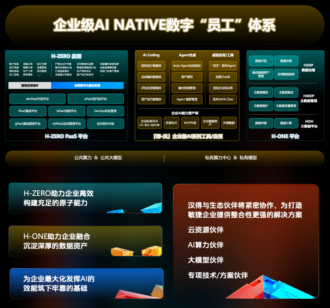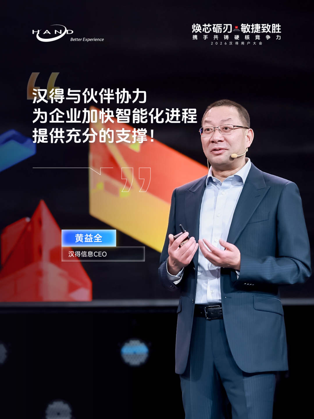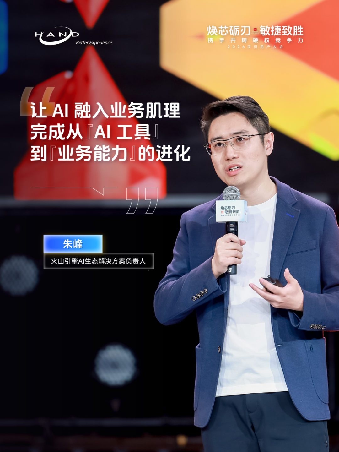 武汉,这座被长江汉水穿城而过,滋养千年的英雄之城,在“烟雨莽苍苍,龟蛇锁大江”的磅礴气势下,在三镇交融的多元画卷里,正奔涌着面向未来的数字锋芒。AI,携着破界融通的革新之力,穿行于产业场景与创新沃土,叩响着传统与前沿交织的新章。 恰逢春分启序,万象更新,3 月 20 日,2026汉得用户大会也在这方热土如约启幕,特邀各方有志之士智聚武汉,以 AI 为翼,共绘企业数字化发展蓝图,共探未来无限可能! 滑动查看下一张图片 “焕芯砺刃 敏捷致胜”——2026汉得用户大会于 3 月 20 日在九省通衢·中国武汉顺利举办,现场近 3000 位客户伙伴齐聚一堂,超 10 万余位朋友们线上共赴这场数智盛会。 值得关注的是,此次参会人员涵盖各界企业决策者、技术负责人以及核心业务骨干人员,彰显出 AI 与企业业务深度融合,已成为行业共识与企业尤为关切的核心命题。 本次大会聚焦企业级 AI 应用真实落地案例,全景呈现汉得与理想汽车、新和成、白贝壳Babycare、中鼎集团等行业领先企业数智实践,以及火山引擎、阿里云、飞书、亚马逊云科技等头部伙伴深度共创成果。 基于深耕行业三十载的敏锐洞察,汉得在加速技术方案迭代的同时,依托强大的生态合作伙伴体系,共同打通了 AI 技术从算力底座到业务场景落地的完整流程。 精彩纷呈的主题演讲,丰富多元的数智展区,以及多场深度专题峰会,使得与会者能够多维度、全场景地体验到企业级 AI 迈向深度业务融合、实现价值跃迁的无限可能! 开场致辞 三十而立 只争朝夕 汉得信息董事长陈迪清先生首先回溯了汉得深耕企业数智化三十载一路走来的成长与思考。 他坦言,汉得的发展与中国经济及 IT 技术的演进高度契合,从早期 ERP 实施起步,到全面囊括自主产品、数字平台、解决方案与全面服务,再到如今拥抱 AI 浪潮,每一个关键转折点都离不开优质客户的指引与共同探索。 陈迪清强调,即便在转型低谷期,汉得也始终顶住压力,坚守“不能亏欠客户”的初心,将工作中的“教训”化为管理财富,最终实现全新业务模式的跨越,如今汉得正迈向下一个高质量发展征程。 他介绍道,由大量优质客户需求驱动的应用场景、汉得专业的业务顾问与产品平台能力,以及各种技术、AI 大模型与产品构成的合作伙伴生态体系,三位一体形成了目前汉得在 AI 时代的全新业务模式。 同时,汉得海外的业务也从服务延伸到了产品层面,由此实现平台、产品、服务与 AI 的高度融合,加之全球市场的稳步拓展,共同构成汉得现阶段的核心发展方向。 而面对 AI 重构未来的可能性,陈迪清从物理学的底层逻辑进行了拆解:AI 作为新一代生产力,其核心逻辑将遵循“能量最低原理”,即它不会凭空重造一切,而是会充分利用人类现有的工具、流程,以最节省能量的方式达成目的。 基于此,他强调未来汉得将和客户一起,将过去三十年沉淀的 IT 实践经验与业务场景,转化为 AI 时代的“MCP”“Skills”以及个性化服务模型,助力企业在不确定性中找到发展的能量守恒点。汉得也将始终以客户和技术为最大的力量来源,助力企业数字化智能化升级,助力 AI 的应用与落地。 “我们不会辜负这个时代的机遇,让我们一起努力,一起实践,只争朝夕!” 焕芯砺刃 敏捷致胜 在AI时代 打造敏捷企业 汉得信息 CEO 黄益全表示,过去 30 年里,汉得有幸得到众多优秀企业的持续信任,得以持续学习不断成长。我们也与企业一起历经了技术日新月异的变革。数字化快速的演变,让人应接不暇,但万变不离其宗,本质目的都是为了帮助企业持续磨砺竞争力。 汉得观察到几乎所有的优秀企业永远不满足现状,时刻在追求更快更准更稳,成为理想的敏捷企业,企业对数字化的诉求,也从真实记录、防错合规逐渐升级为帮助企业去求得最优解,在所有的业务中去找到如何让下游更满意、让上游更简单、让自己更高效的最佳解决方案。 演讲过程中,黄益全特邀汉得信息首席创新专家康翔登场,通过真实案例演示视频,为现场参会嘉宾详细展示并解读了汉得新一代 AI 智能体体系,在企业端复杂场景中的应用落地与效率升级,同时梳理了 AI 在企业端应用的演进脉络。 康翔认为:“AI 从‘知识问答’迈向‘任务执行’,意味着正式拉开了颠覆企业内部经营管理模式底层逻辑的序幕!” 在 AI 时代,企业高效求得最优解的可行性已经变得越来越高。通过现场演示的案例,我们看到一个 AI 超级助手如何帮助跨境物流调度员在数分钟内即完成过去需要数天才能完成的计划排程工作,并把用户面对的复杂的“计算题”变成决策更快更准的“选择题”或“判断题”。 黄益全强调,AI 在 B 端的应用落地远比 C 端复杂。企业需要较高的确定性,每个企业有既定的复杂的规则要求,因此 AI 在 B 端的发挥需要被充分地约束和引导以符合每个企业的“个性”,要做到这一点,企业沉淀足够丰富的数字化资产是极为重要的。 一方面是能力资产,以 API、算法、MCP 等为形式,沉淀企业丰富的原子能力库,承载企业的规则、经验及偏好,赋能 AI 的同时也约束 AI 按企业“个性”行动。另一方面是数据资产,企业需尽最大努力打好数据基础,将企业业务对象及相互关系清晰定义及描述,让 AI 充分读懂企业。基础越扎实,越能放大 AI 效能,企业也才越敢让 AI 充分发挥,这一点在过去两年已经形成了较为普遍的共识。 B 端大量的长链条业务往