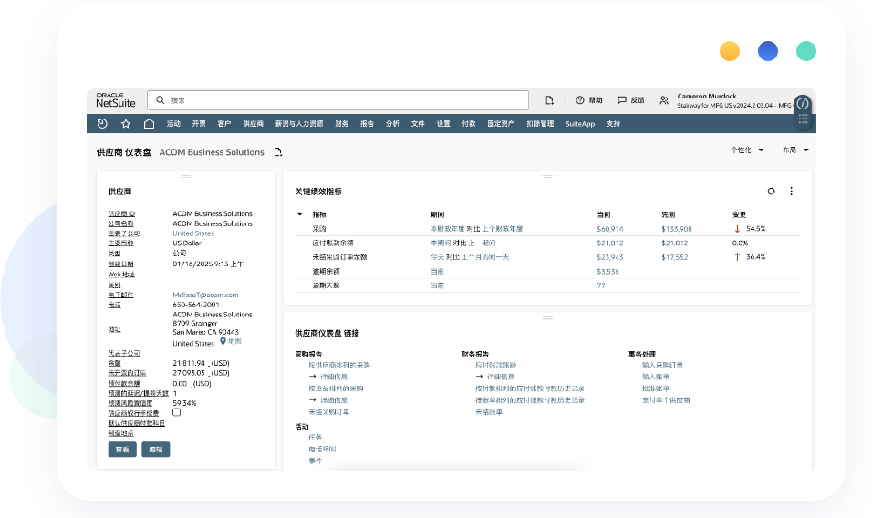 Oracle NetSuite 供应链管理功能让您在决策时无需过多考虑产品制造和存储位置,通过高效管理缩短交付前置时间