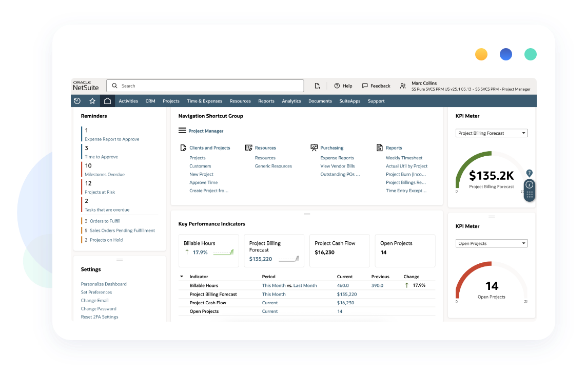 通过一个统一的系统全面洞察后端财务流程和前端服务运营,从而提高项目利润率、改善可计费资源利用率,同时根据强大且富于洞察的业务指标制定数据驱动的、明智的战略和战术决策